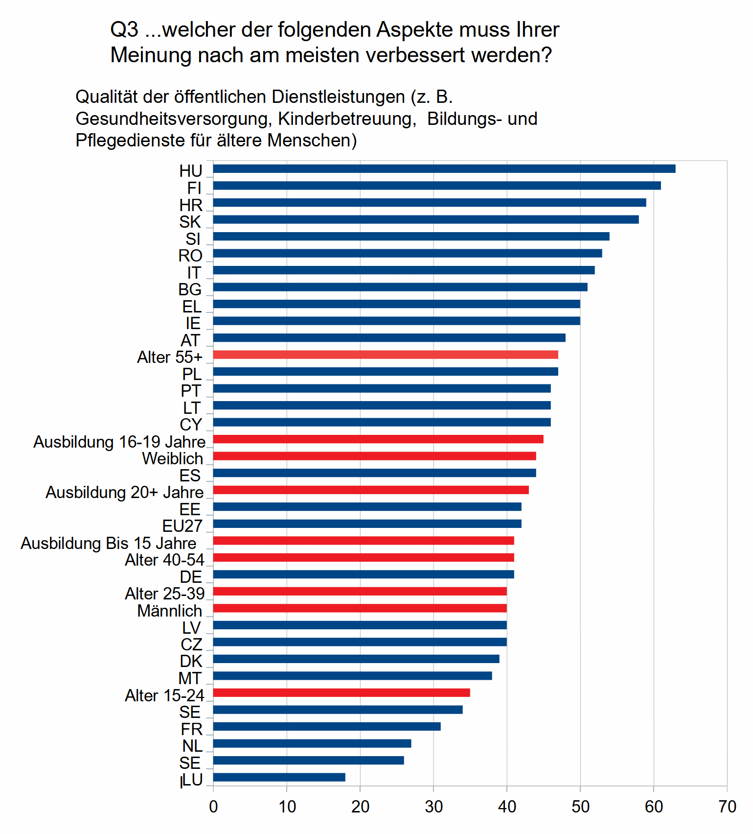 Üblicherweise finden sich in den Eurobarometer-Berichten Tabellen mit Daten über "soziodemografische Gruppen" (Alter, Geschlecht, Bildungsstand, Wohlstand usw.). In diesem Bericht sind keine solchen Tabellen enthalten: Um die Daten zu erhalten, müssen Sie die Dateien im .xlsx-Format lesen.